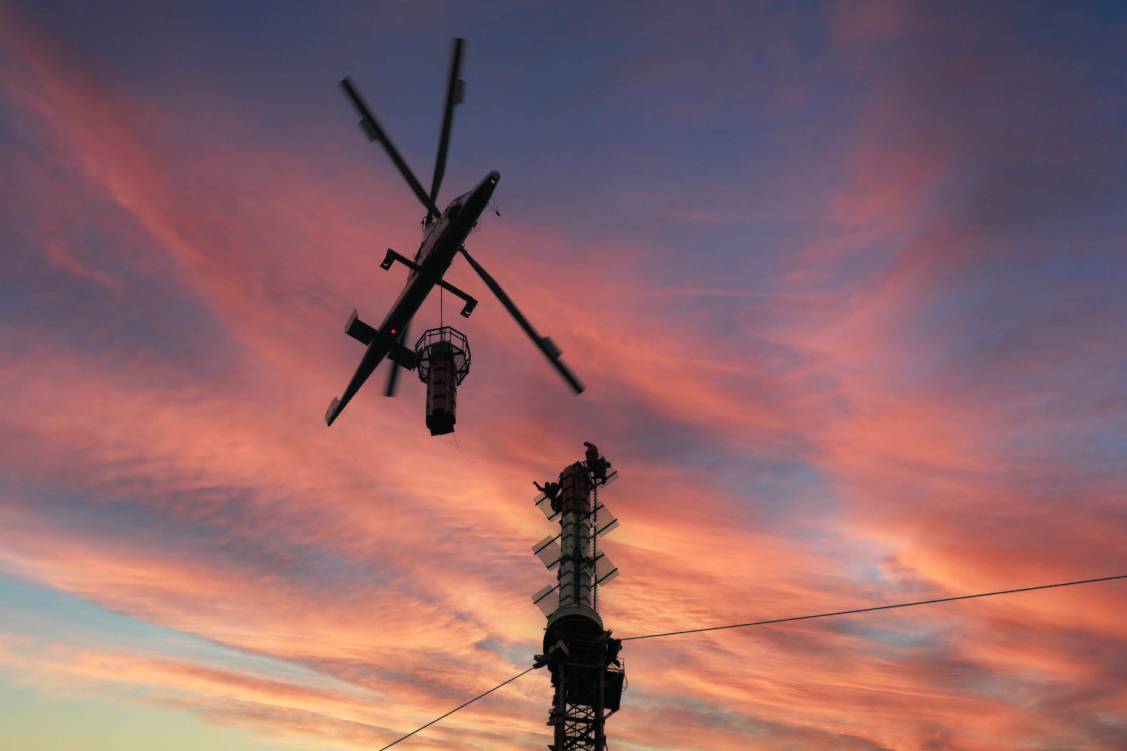 wymiany systemów antenowych tv na wysokościach 200-300 m.n.p.t. za pomocą helikoptera
